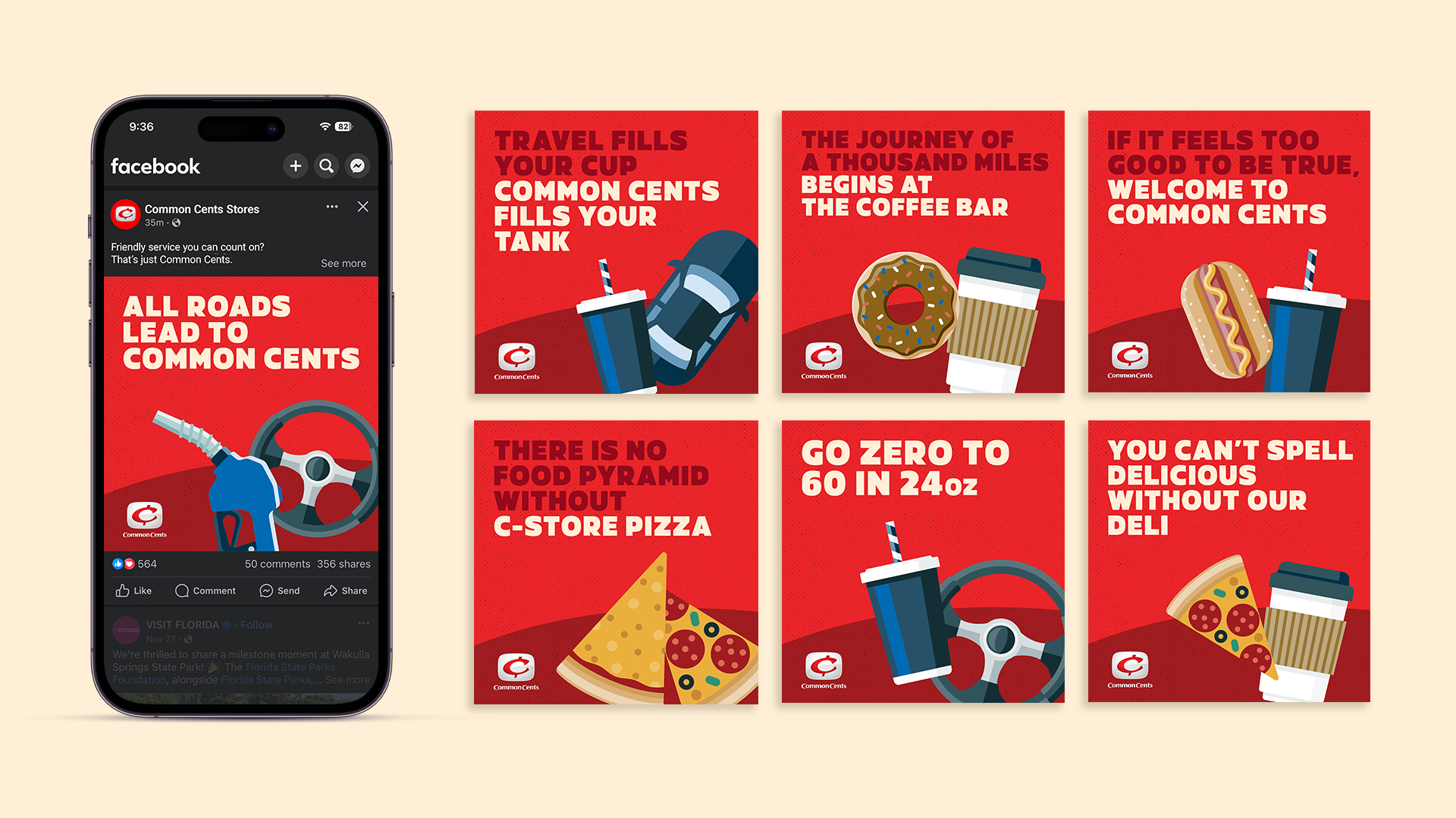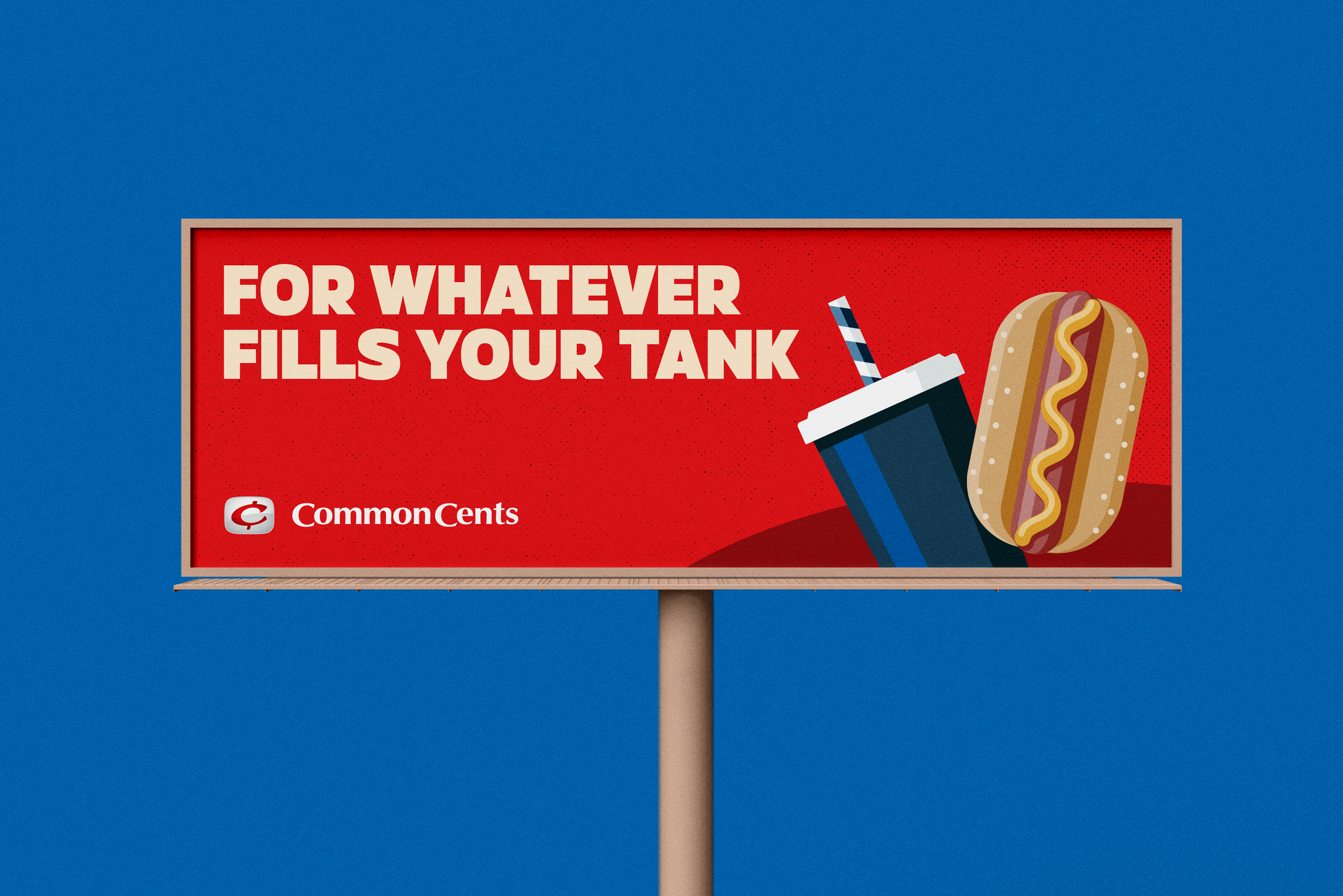 This Common Cents campaign brings the brand to life through a modern take on pragmatic, road-tested wisdom. Inspired by everyday heroes on the go, the creative materials personify Common Cents as a trusted companion offering witty, cowboy-style guidance through simple comforts like a tall cup of coffee or a fresh deli snack. Rather than grand gestures, the campaign focuses on small moments of exceptional service, using clever copy and grounded visuals to create a cohesive look and feel that feels familiar, helpful, and genuinely human.