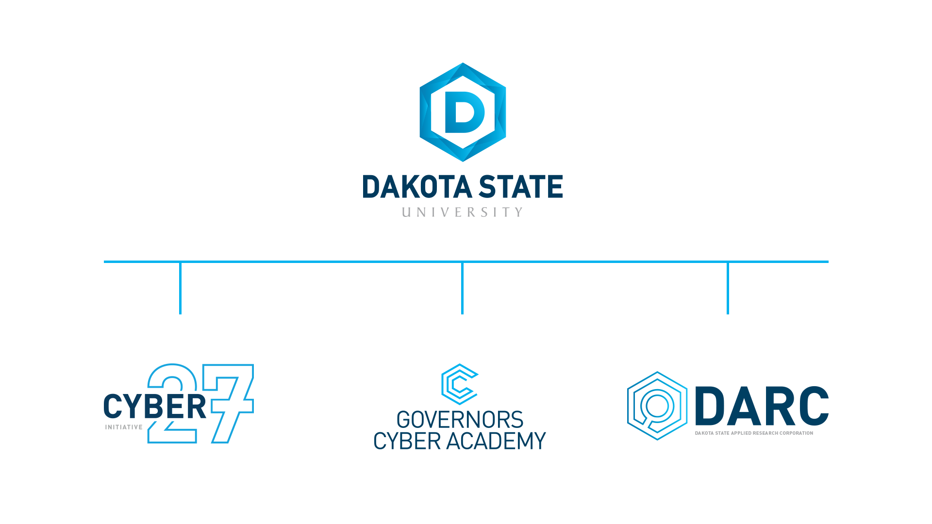 For Dakota State University, I was tasked with creating a unique identity for DARC (Dakota State Applied Research Corp) that felt like an extension of the already established DSU brand. It was to be cohesive with the other logos under the DSU umbrella, simple yet memorable, and extendable. With this specific option, I presented something that was bold yet balanced, recognizable, high-tech, and inviting.