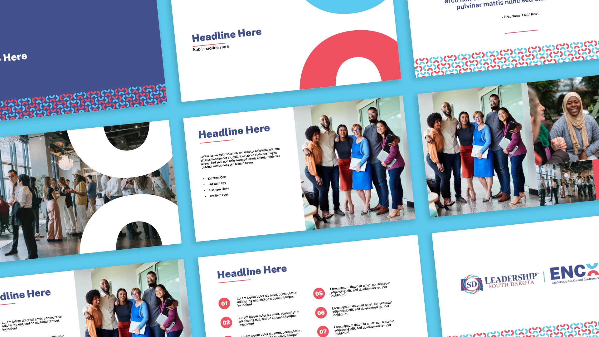 The goal of this project was to create a flexible event identity for Leadership South Dakota’s alumni conference that strikes a balance between a fun, welcoming feel and a polished, professional look. The design system included event naming, logo concepts, and a streamlined brand kit that aligned with existing brand standards while giving the conference its own visual personality. The result was an approachable, easy-to-use mini-brand designed to engage alumni and support consistent promotion across digital and on-site touchpoints.